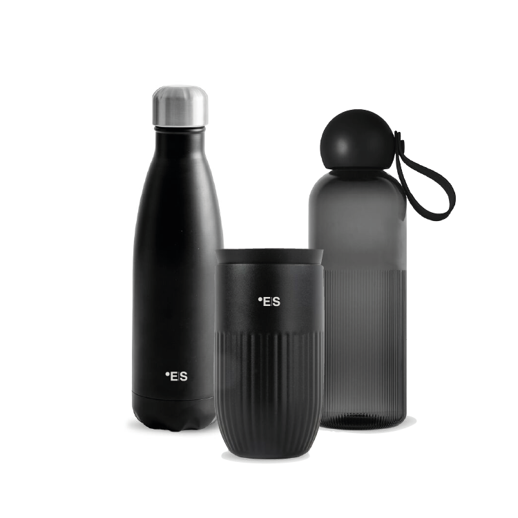 A kit for those who are always on the go, heading toward their next goal—whether in everyday life or at work. This set includes our popular Tova insulated mug made of recycled stainless steel, our timeless Nils thermos bottle also in vacuum-insulated recycled stainless steel—both keeping your drinks hot or cold on the go—and the lightweight, sleek Ture water bottle in rPET with a lid made of recycled PP. A functional, sustainable, and appreciated gift, packed in a Medium Gift Box, ready to accompany you in life.